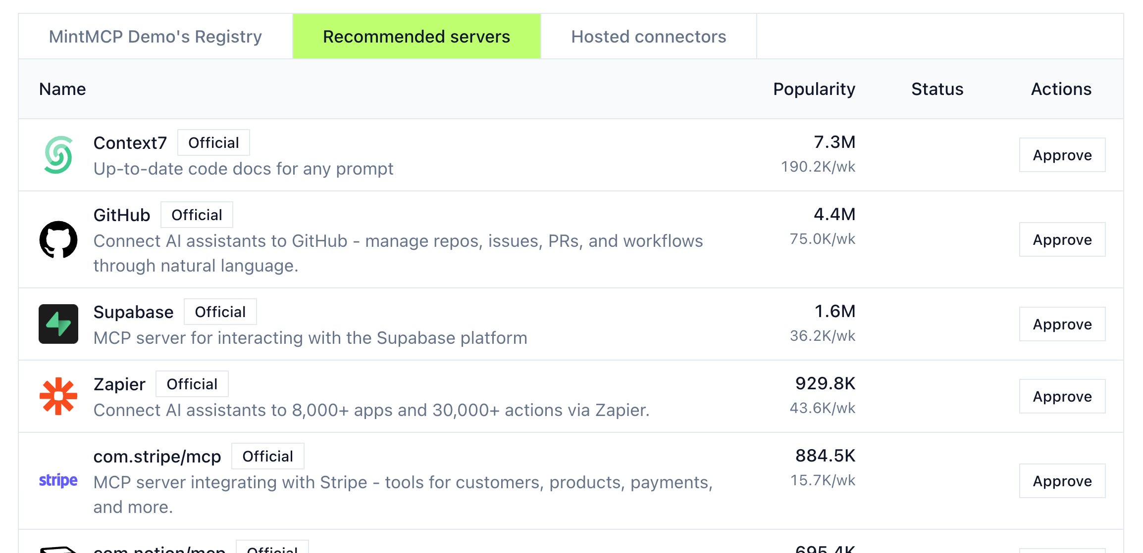 - Add more servers: Browse the Recommended servers tab or add a remote MCP for servers not in the catalog
